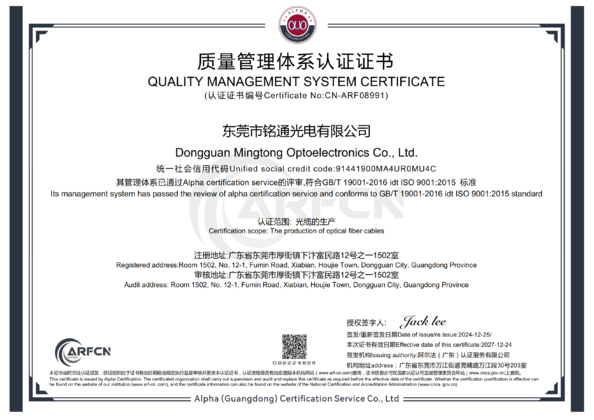 From the procurement of raw materials to the final inspection of finished products, all processes are carried out in accordance with ISO standards. It ensures that each operation is traceable, each parameter is controllable, and effectively guarantees the stability and reliability of optical cable products in terms of transmission performance, mechanical strength and environmental resistance.